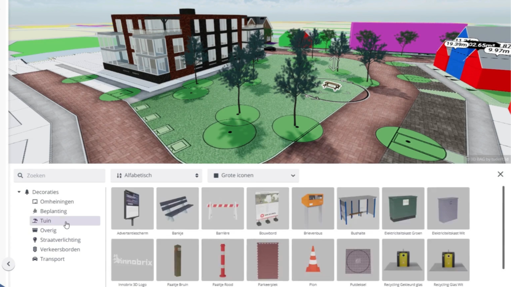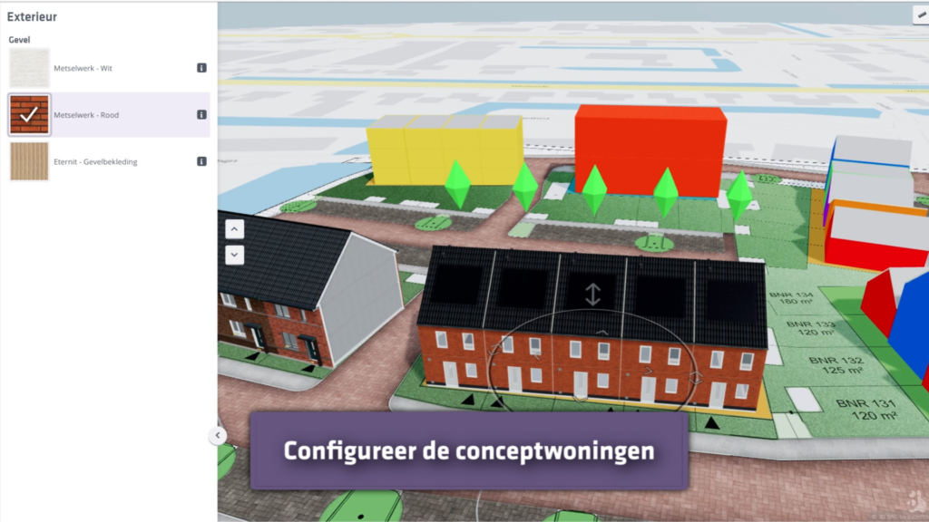In de planconfigurator plaatst u eenvoudig conceptwoningen en infrastructuur op elke gewenste locatie. U voert snel haalbaarheidsstudies uit, visualiseert plannen realistisch en betrekt bewoners op een begrijpelijke manier.